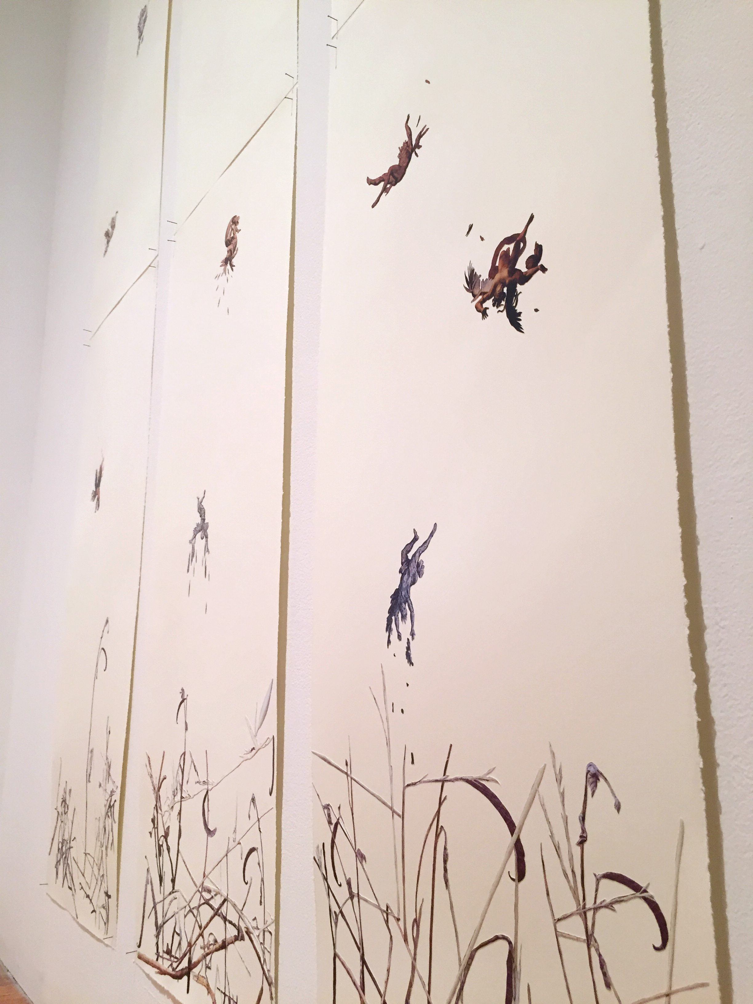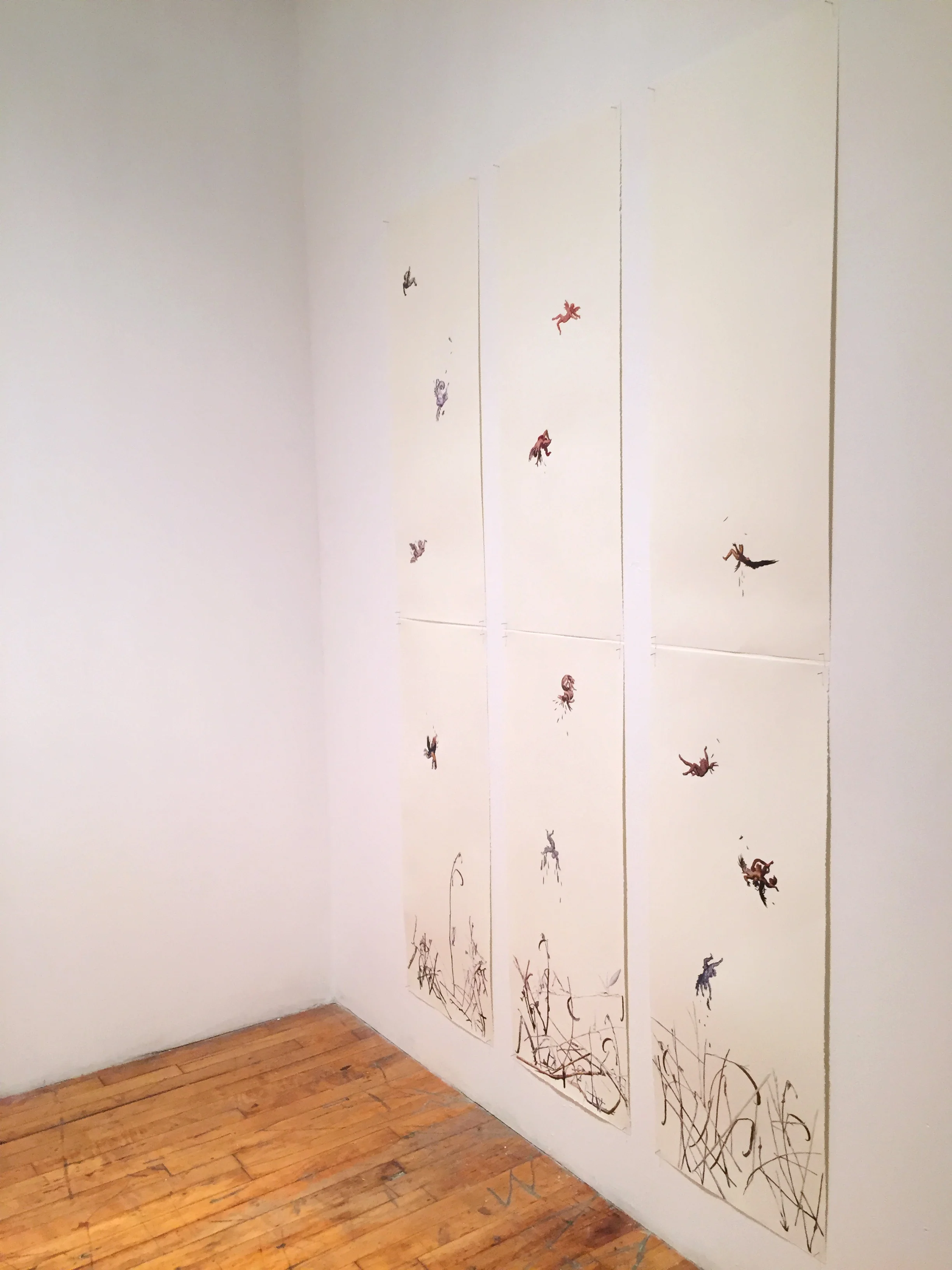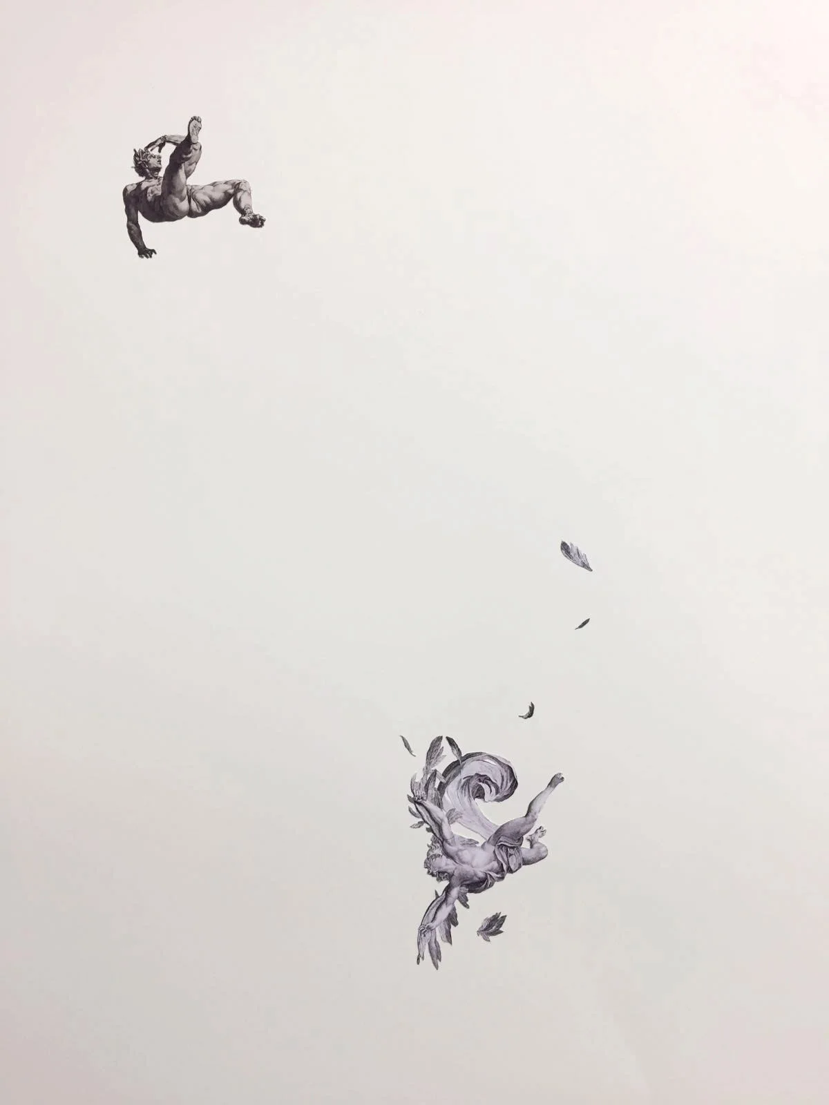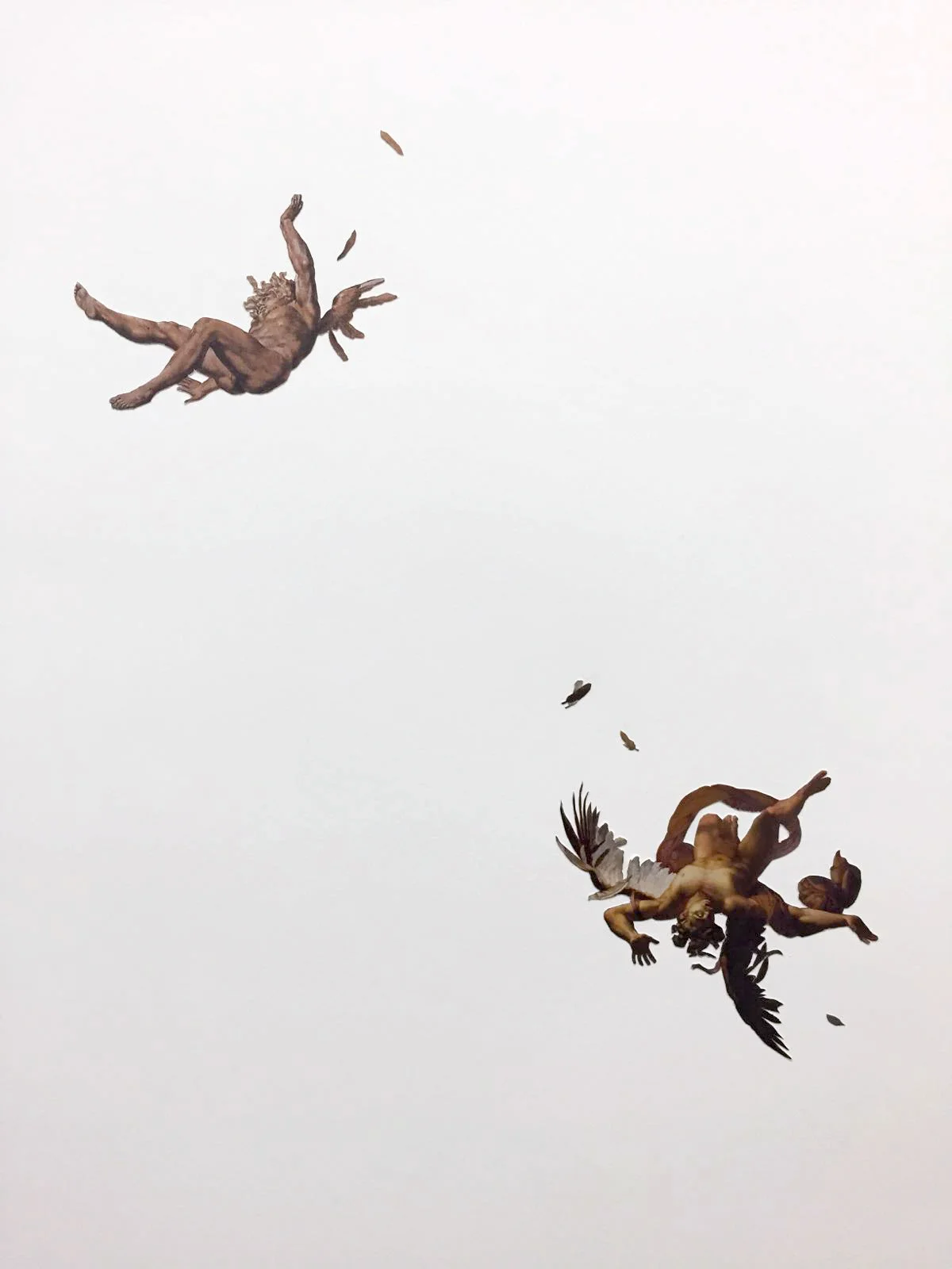 Through the recollection and displacement of the myth told by artists through history, this work proposes an alternative fiction where falling outweighs ascension and looking down displaces looking up. The small, the insignificant, the overlooked shine now like golden sparkles in a honey bath.